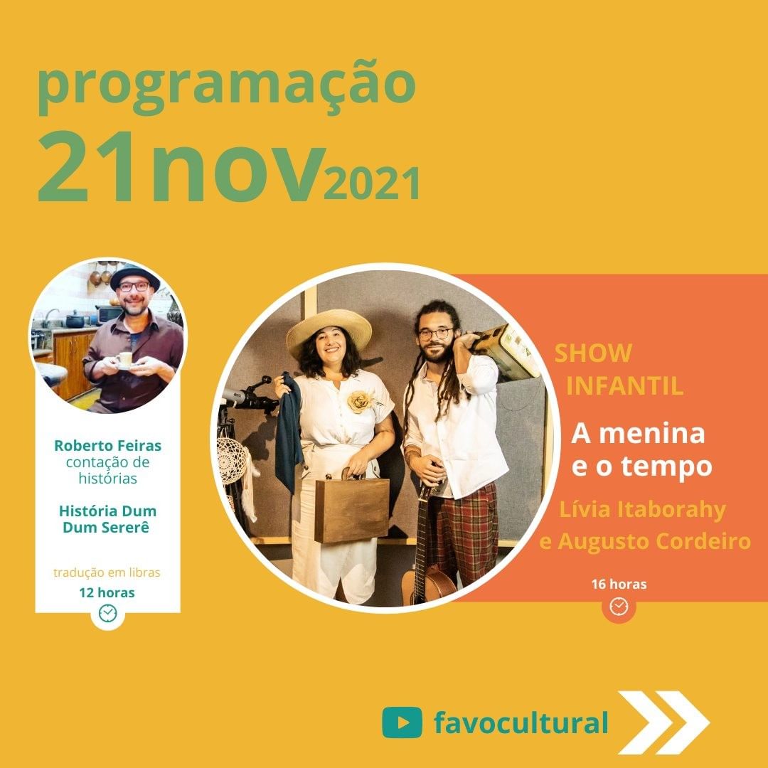 E como a música não pode faltar, a meninada vai se divertir com o show "A menina e o Tempo" de Lívia Itaborahy, acompanhada de Augusto Cordeiro.