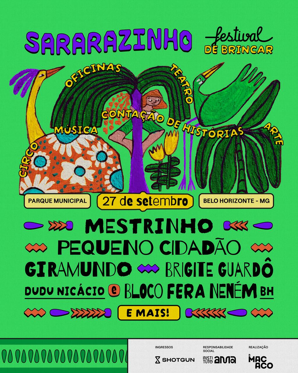 Comemore a infância com propósito! Esta é a missão do Sararazinho: Festival d e Brincar, que estreia no Parque Municipal Américo Renné Gianetti, em Belo Horizonte, no dia 24 de maio de 2026. O evento inédito propõe uma experiência artística transformadora, que respeita a diversidade, estimula a imaginação e conecta gerações por meio da música, da arte e da brincadeira.