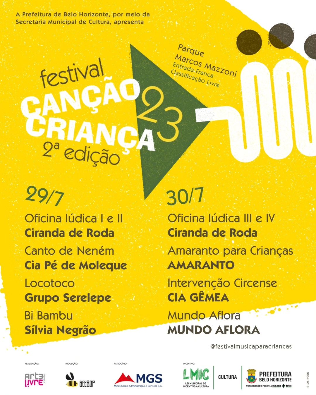 Além da programação de shows, ainda tem Oficina Lúdica com o grupo Ciranda de Roda durante os dois dias de festival.