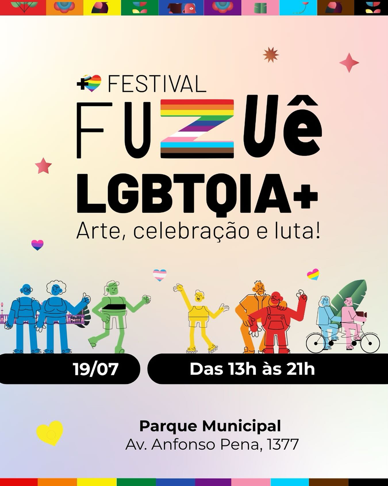 No dia 19/07 acontecerá a primeira edição do Festival Fuzuê LGBTQIA+: Arte, Celebração e Luta! O evento terá DJs, shows de drag, música e outras linguagens artísticas. Serão dois palcos, sendo um exclusivamente dedicado à música eletrônica. E, atendendo a pedidos, o evento contará com uma apresentação nacional!