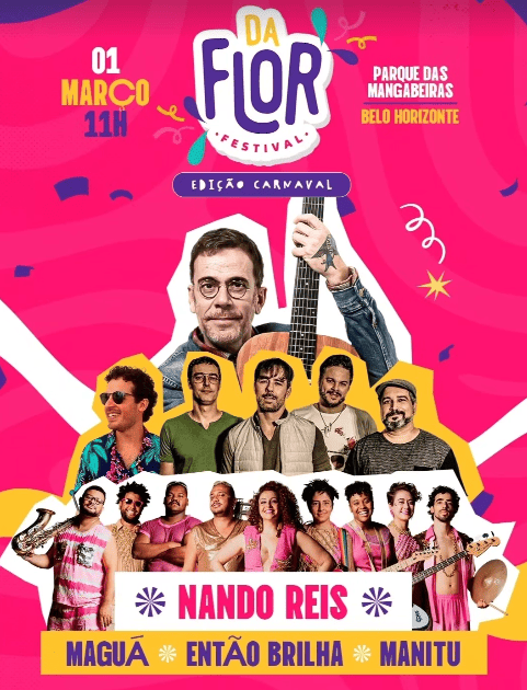 Seu show está no Festival da Flor edição Carnaval, em local inédito, no Parque das Mangabeiras, dia 1º de março, sábado, a partir de 11h.