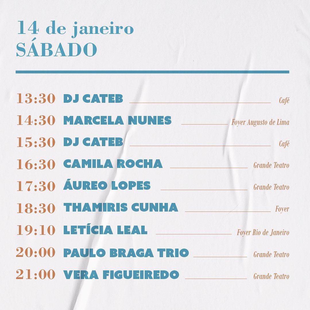 No domingo, é a vez de Maria Bragança. Nascida em Itabira, a musicista traz um estilo único, em mistura perfeita de jazz brasileiro e canções folclóricas tradicionais brasileiras, com elementos da música clássica e contemporânea e Raissa Anastásia e Bia Nascimento, que são referência em choro na capital mineira.