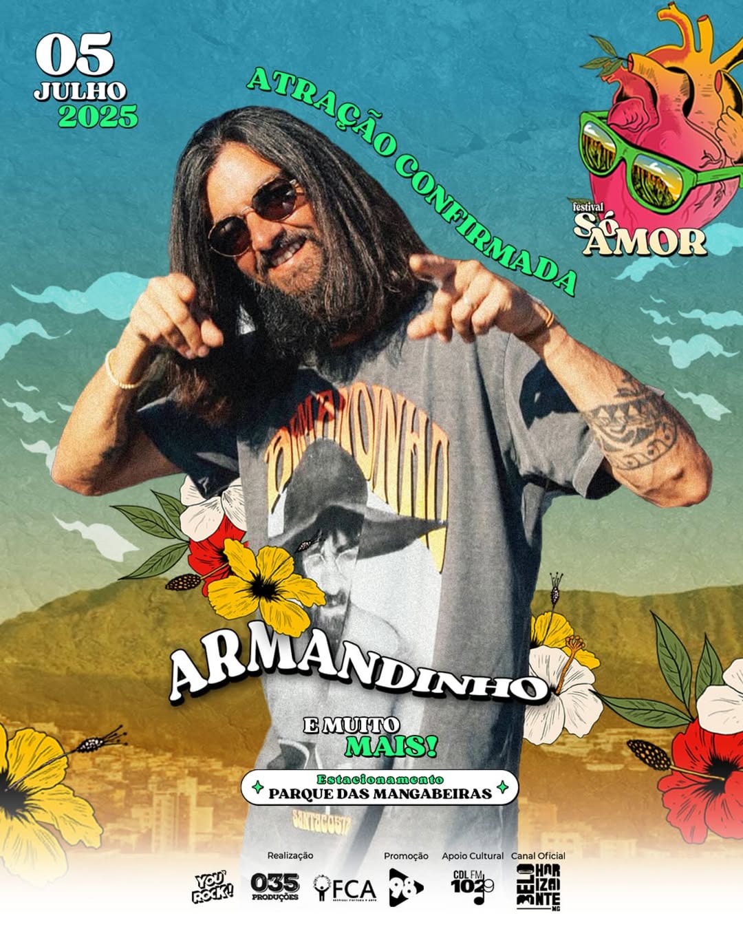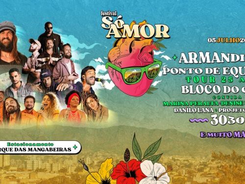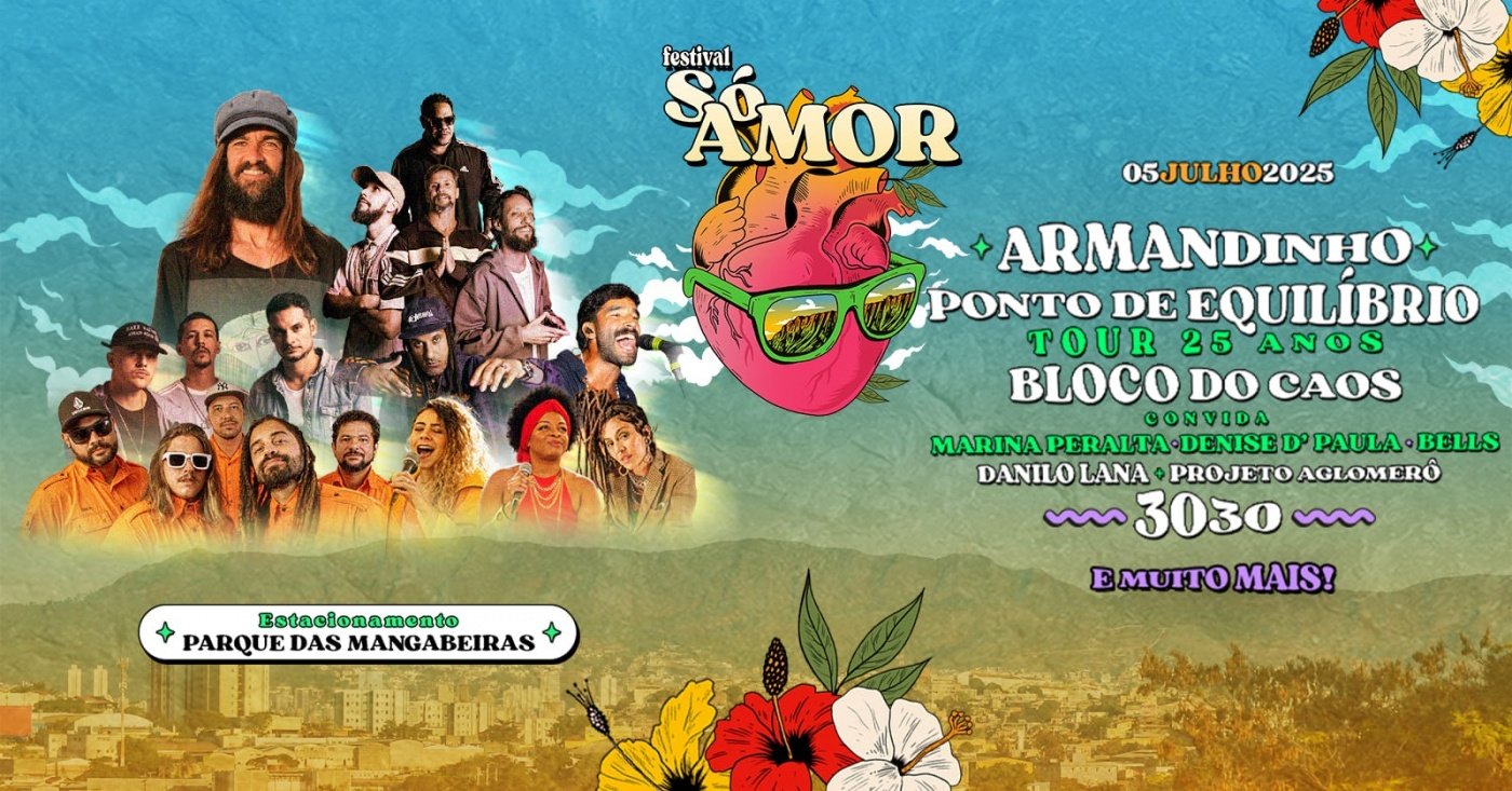 O Festival Só Amor está de volta a Belo Horizonte para sua segunda edição, no dia 5 de julho, prometendo uma experiência vibrante de música, arte e conexão. A partir das 14h, o evento ocupa o Parque das Mangabeiras — um dos maiores cartões-postais da cidade — com programação musical de peso, espaços de experiência, gastronomia e uma vista espetacular da capital mineira. Entre os destaques do line-up estão Armandinho, Ponto de Equilíbrio, 3030, Bloco do Caos, Danilo Lana e os DJs DeSkaReggae, reforçando a proposta do festival de celebrar a diversidade cultural, o encontro com a natureza e as boas energias.
