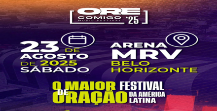 Ore Comigo Music Festival 2025! Vem aí o maior festival de oração da América Latina! No sábado, 23 de agosto , a Arena MRV será tomada por uma multidão de adoradores!
