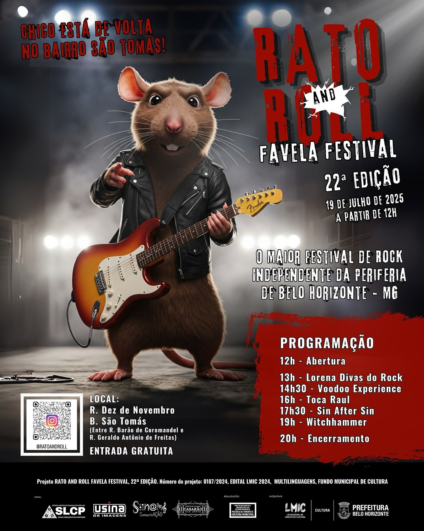O mais expressivo festival de rock independente da periferia de Belo Horizonte acontece dia 19 de julho de 2025, a partir das 12h, na Vila São Tomás (Zona Norte). Com apoio do Edital LMIC 2024 e da Prefeitura/BH, o evento traz cinco bandas de rock, blues, soul, jazz, metal e stoner: Lorena e as Divas do Rock, Sin after Sin, Voodoo Experience, Toca Raul e Witchhammer.