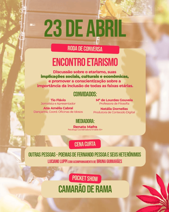 Roda de Conversa sobre Etarismo com: Tio Flávio, Maria de Lourdes Gouveia, Ana Amélia Cabral, Natália Dornellas e Renata Mafra como mediadora