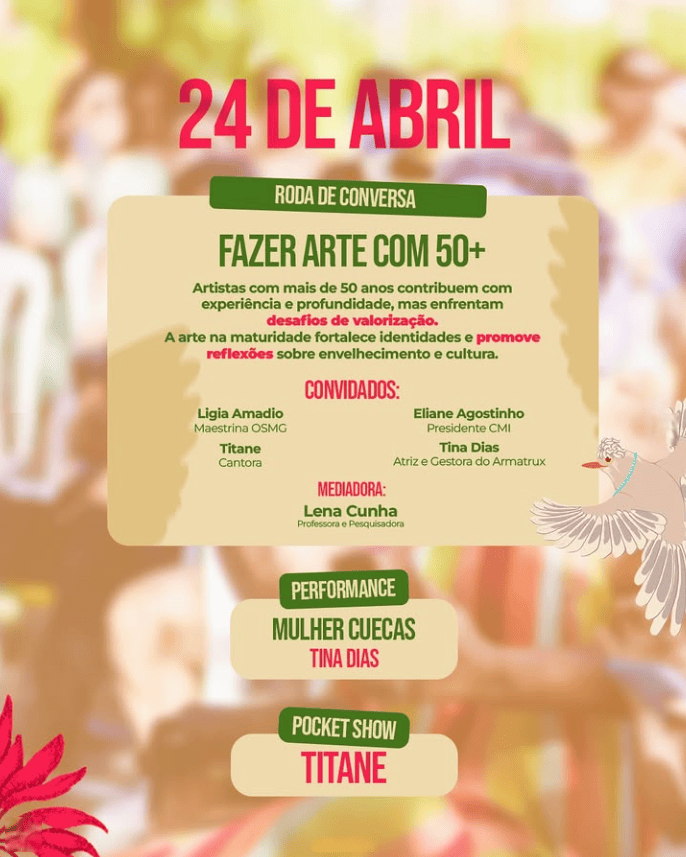 Roda de conversa “Fazer Arte com 50+” com: Ligia Amadio, Titane, Eliane Agostinho, Tina Dias e Lena Cunha como mediadora