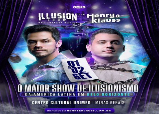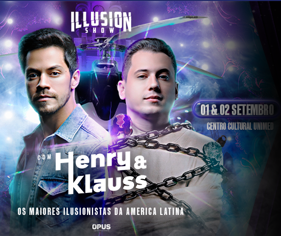 O novo espetáculo “Illusion Show - Uma Jornada Mágica” promete uma experiência inesquecível, com grandes emoções, interatividade com a plateia, mágicas utilizando tecnologia e muita inovação. Com performances impactantes, Henry e Klauss prometem desafiar o impossível de forma inteligente.