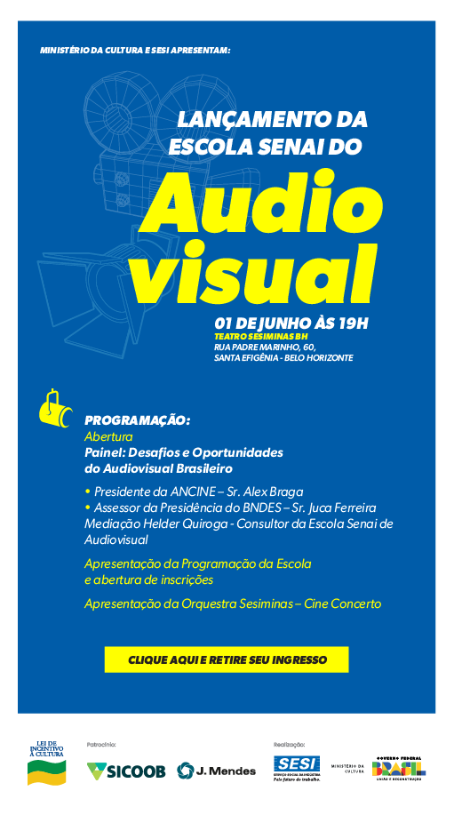 A Escola Senai/Sesiminas do Audiovisual será criada para se tornar um espaço educativo, profissionalizante e de apoio ao mercado audiovisual em Minas Gerais. Esta iniciativa se destina a realização de cursos, oficinas, debates e palestras direcionados à formação técnica e aperfeiçoamento profissional tendo no público jovem seu foco principal, como forma de contribuir para o fortalecimento do segmento audiovisual no Brasil, em especial Minas Gerais.