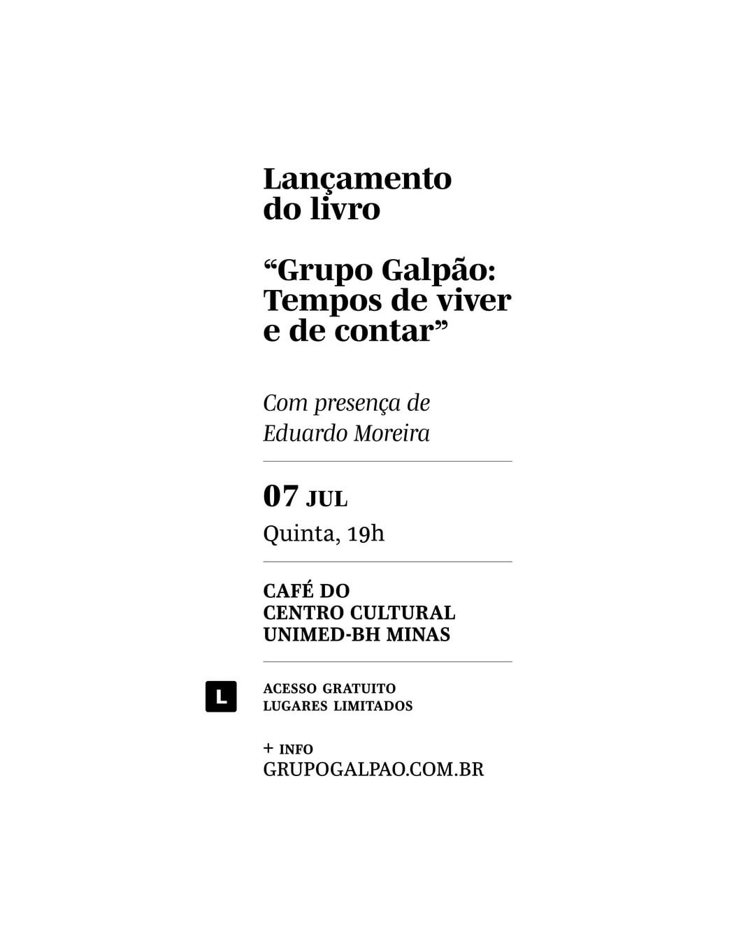 Com textos do ator Eduardo Moreira e ensaio do crítico Valmir Santos, “Grupo Galpão: tempos de viver e de contar” revela histórias e bastidores do Grupo, além de imagens de uma rica iconografia de espetáculos.