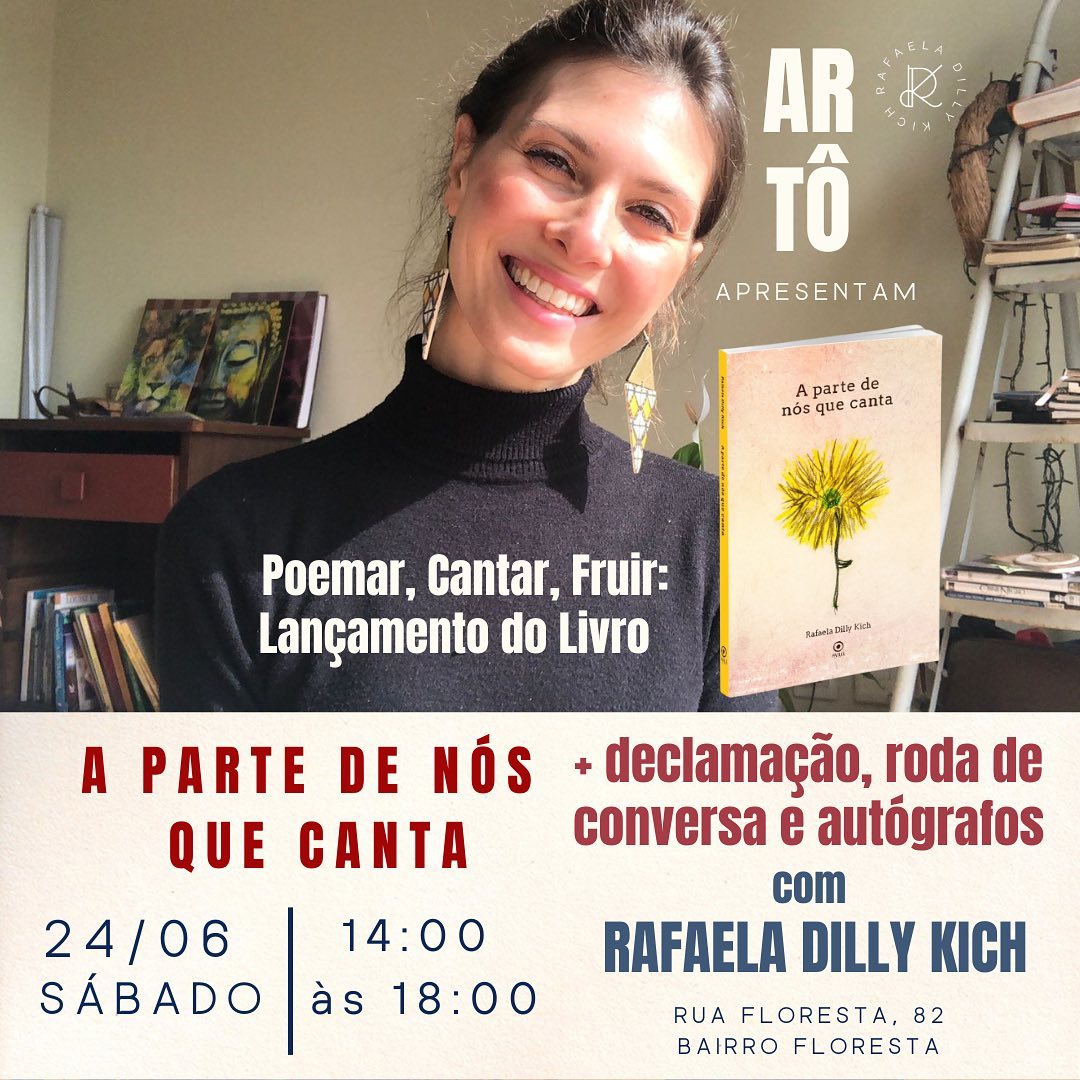 Com este pensamento, de resgatar aquilo que existe de mais singular ao nosso redor, a autora Rafaela Dilly Kich vem de Porto Alegre até a Casa Artô, em Belo Horizonte, trazer um pouco de poesia no próximo sábado, dia 24 de junho, das 14h às 18h.