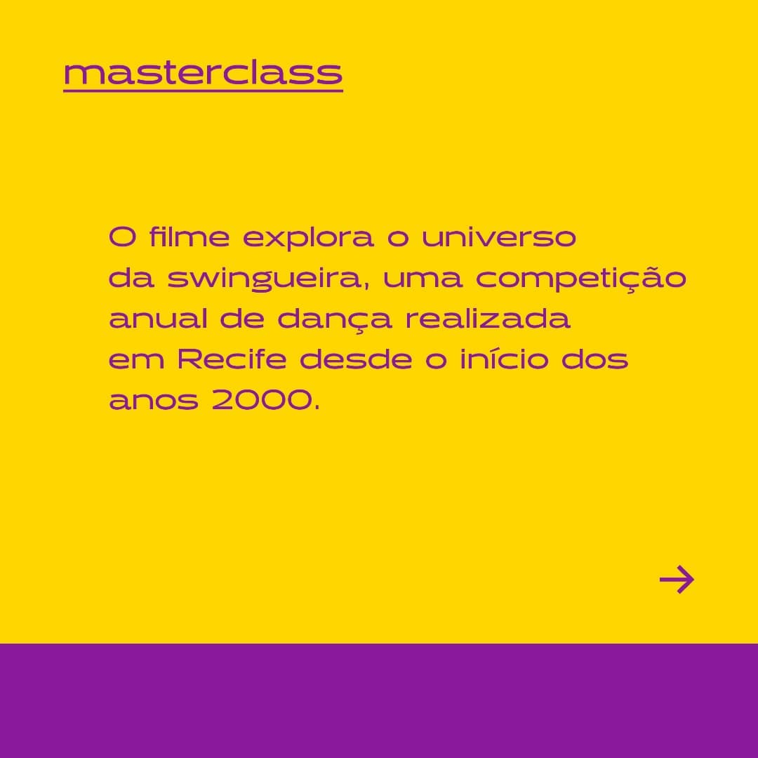 Depois de se debruçarem sobre o gospel, o brega, e outras manifestações musicais populares, os artistas realizaram esse filme que explora o universo da swingueira, uma competição anual de dança realizada em Recife desde o início dos anos 2000.