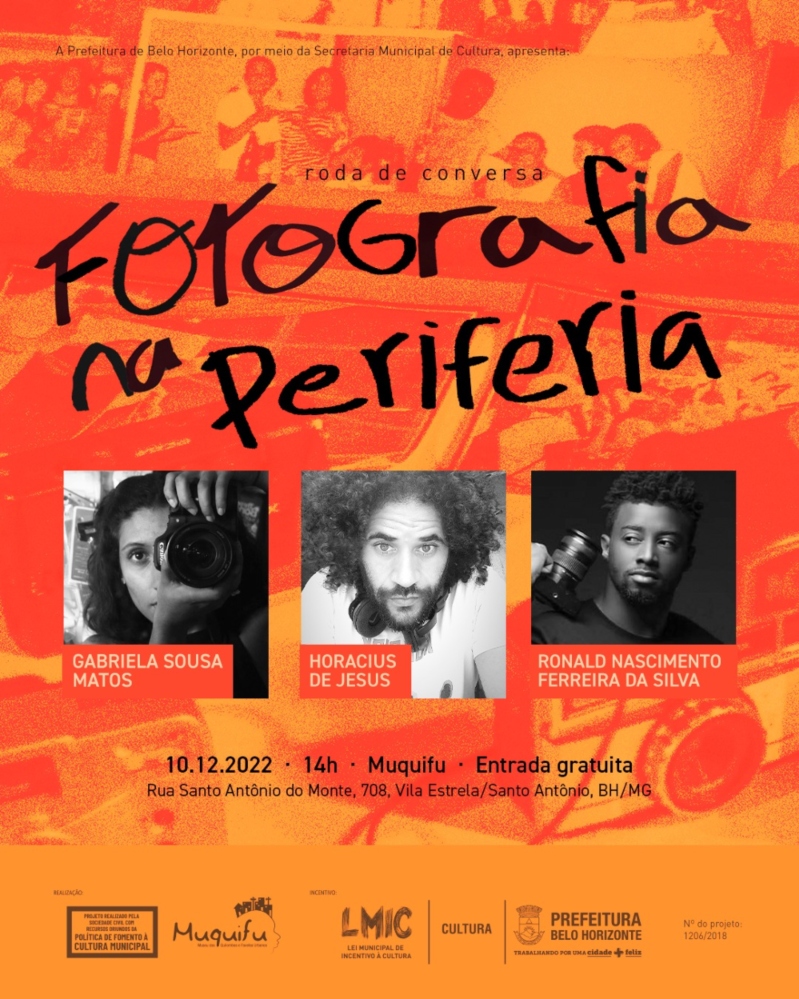 Dia 10 (sábado), às 14h, o Muquifu - Museu dos Quilombos e Favelas Urbanos recebe em sua roda de conversa Gabriela Matos, Horacius de Jesus e Ronald de Nascimento para falar sobre fotografia na periferia.