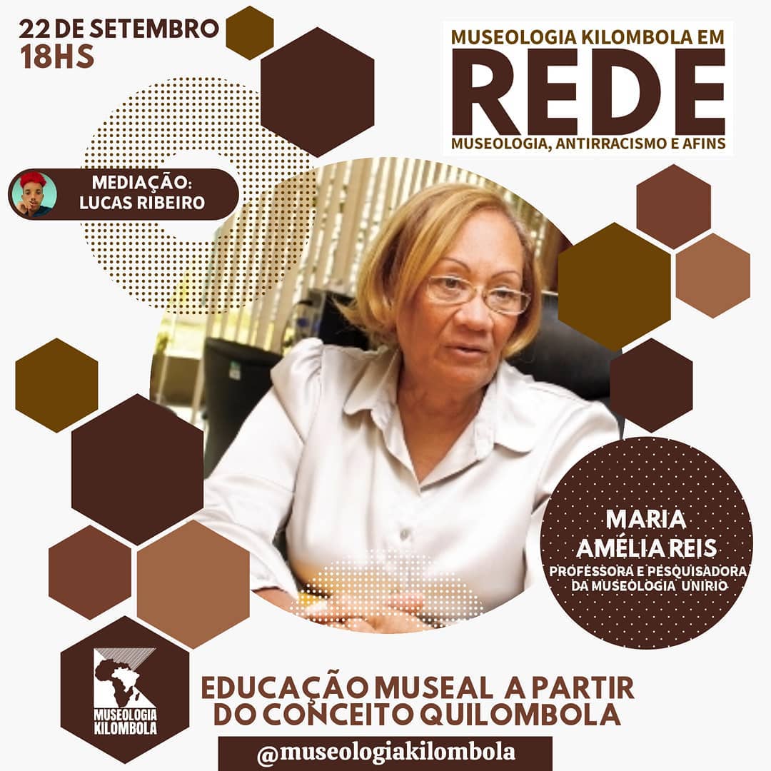 Chamamos a estimada Professora Drª MARIA AMÉLIA REIS para conversar sobre Educação Museal a Partir do Conceito Quilombola no dia 22 de setembro às 18h.