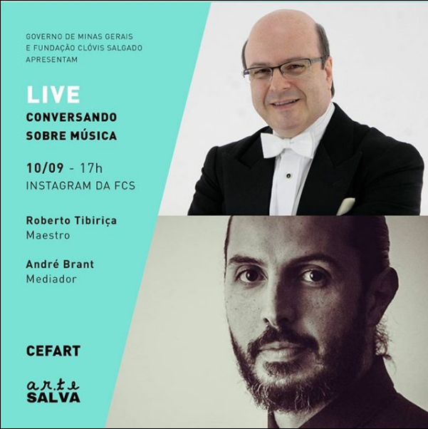 Hoje, às 17 horas, a Fundação Clóvis Salgado e o Governo de Minas apresentam a live "Conversando sobre música" com participação do maestro Roberto Tibiriça. A conversa será mediada por André Brant no Instagram da FCS.