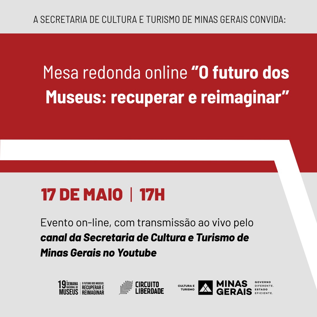 Na abertura da Semana Nacional de Museus, a Secretaria de Estado de Cultura e Turismo de Minas Gerais realiza a mesa “O futuro dos museus: recuperar e reimaginar”.