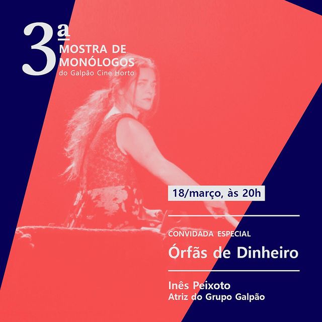 Esta será a primeira vez que, além dos estudantes, a mostra traz dois espetáculos convidados especiais, de longa-duração. “Órfãs do Dinheiro” é um monólogo da atriz Inês Peixoto.