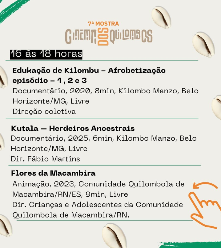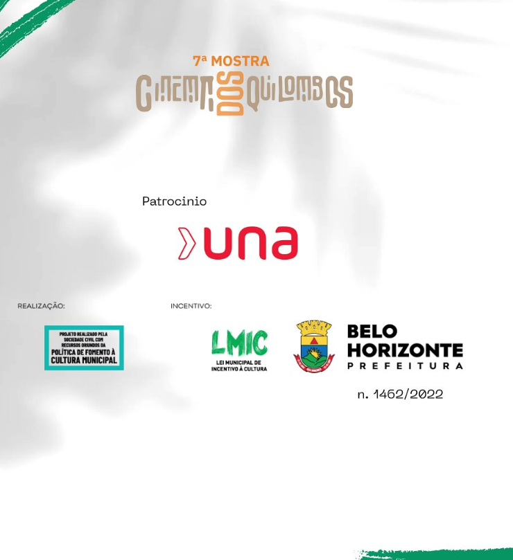 A 7ª Mostra Cinema dos Quilombos é realizada com recursos da Lei Municipal de Incentivo à Cultura de Belo Horizonte e conta com patrocínio da UNA.