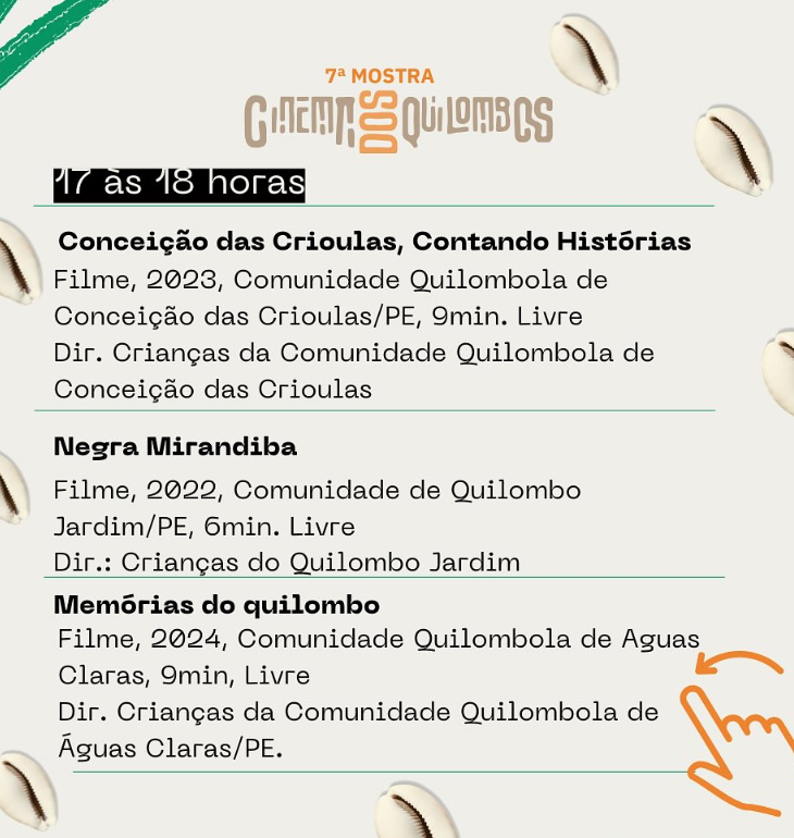 A produção do festival recebeu filmes de diversas partes do Brasil e o recorte são obras realizadas por quilombolas ou parceiros, trazendo para as telas a cultura rural e urbana dos remanescentes de quilombos, que resistiram à escravidão e seguem organizados para manter seus territórios e suas tradições.