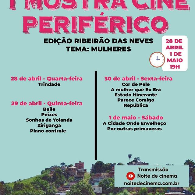 Entre os dias 28 de abril e 1 de maio, Ribeirão das Neves recebe a primeira I Mostra Cine Periférico, com a temática “Mulheres no Audiovisual”. Serão quatro dias de exibições gratuitas de filmes realizados por mulheres.