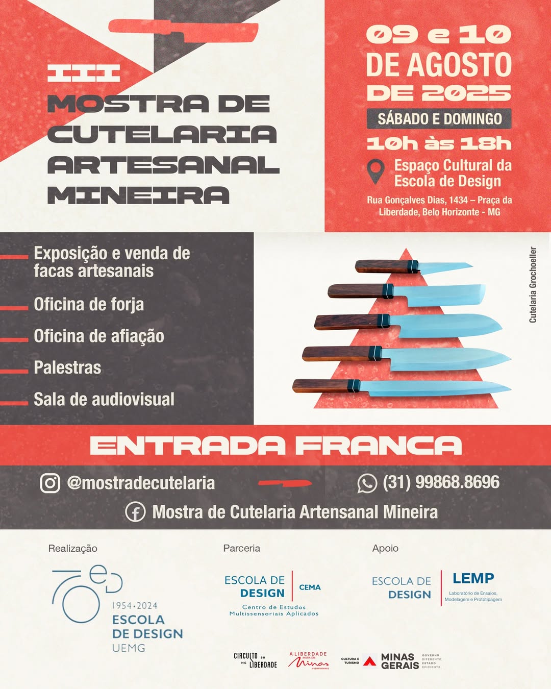 Vem aí a III Mostra de Cutelaria Artesanal Mineira! Serão dois dias de exposições, oficinas e palestras imperdíveis sobre o fascinante universo da cutelaria.