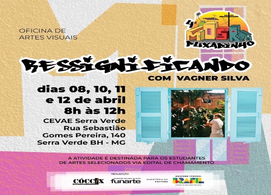 A primeira atividade tem início no sábado, dia 8/4, com a realização da oficina Ressignificando, pelo artista visual e pedagogo Vagner Silva, no Centro de Vivência Agroecológica (Cevae) Serra Verde.