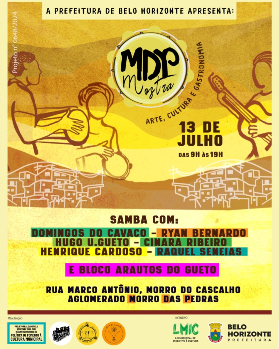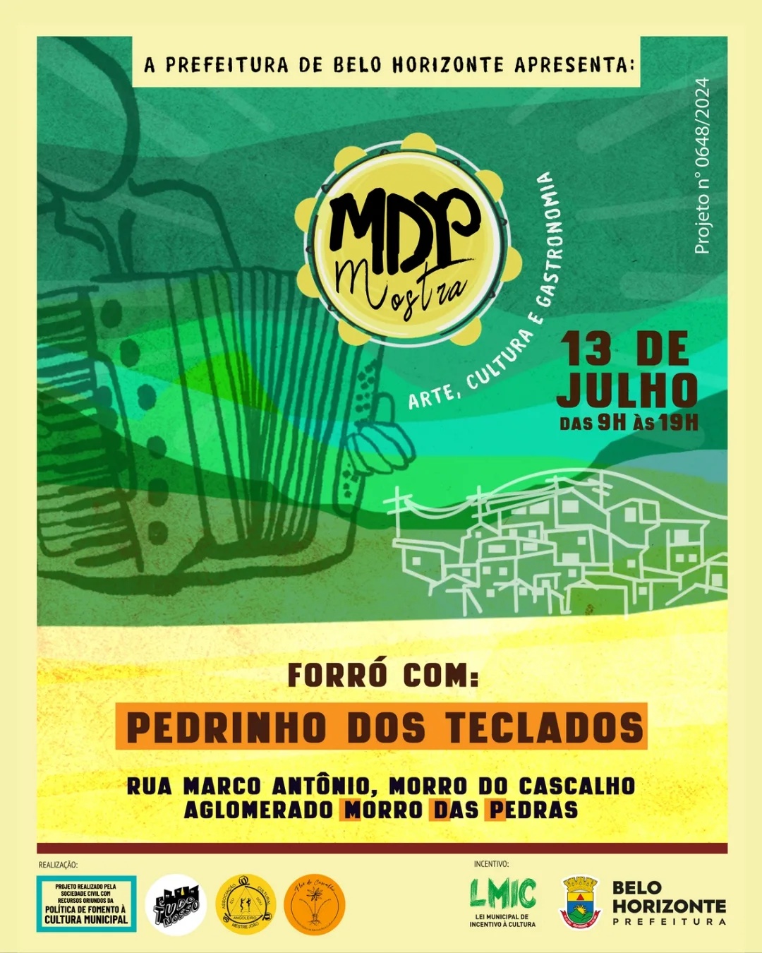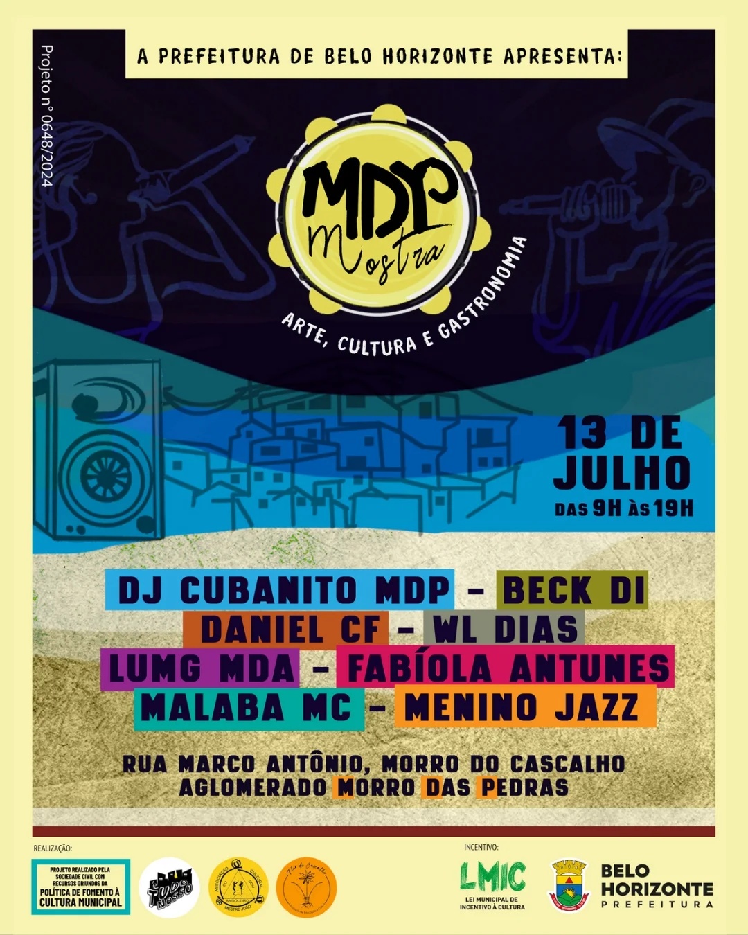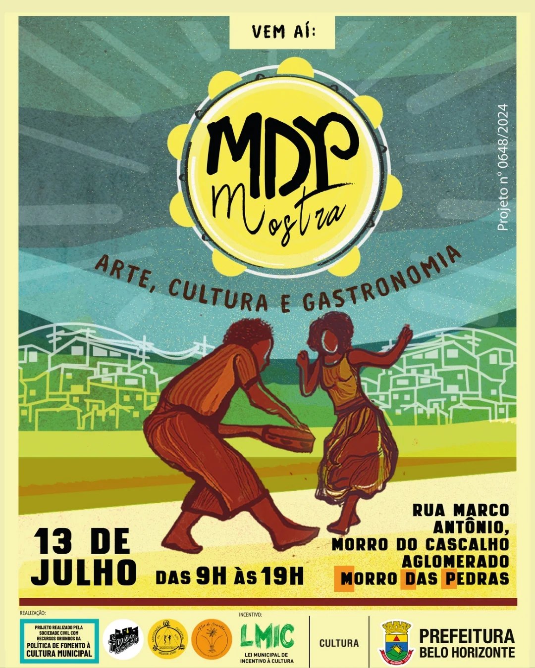 Realização: A MDP Mostra é viabilizada pela Lei Municipal de Incentivo à Cultura de Belo Horizonte, com apoio da comunidade do Morro das Pedras e parceiros locais.