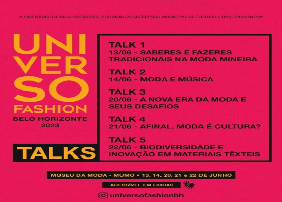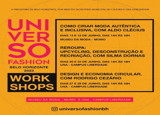 A programação é gratuita e presencial, e irá ocupar o Museu da Moda de Belo Horizonte - MUMO e a UNA – Campus Liberdade.