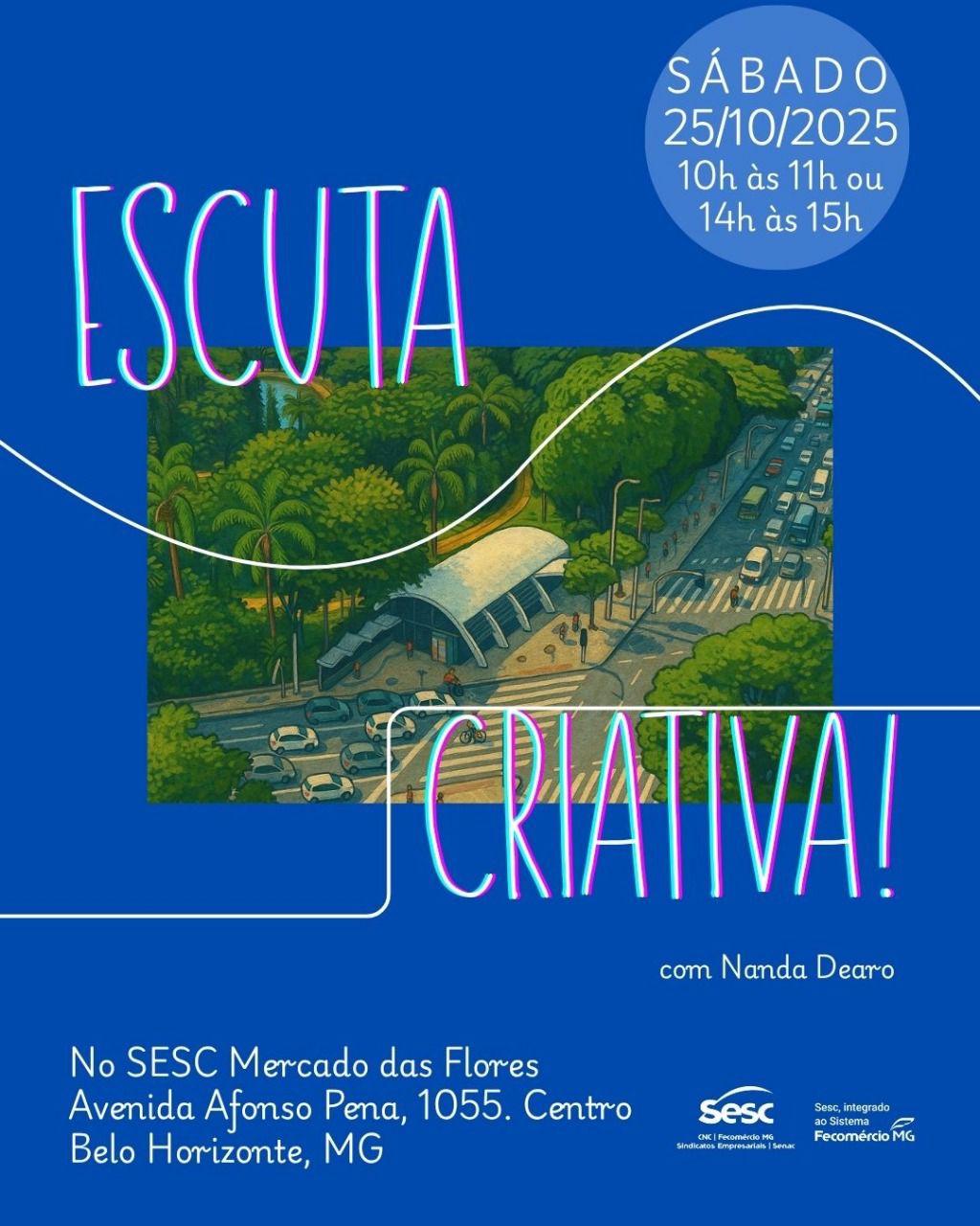 O Sesc Mercado das Flores te convida uma experiência sensível dos sons. No dia 25 de outubro, sábado, acontece a oficina "Escuta criativa: ouvir e criar através do corpo e da paisagem sonora" realizada por Nanda Dearo.