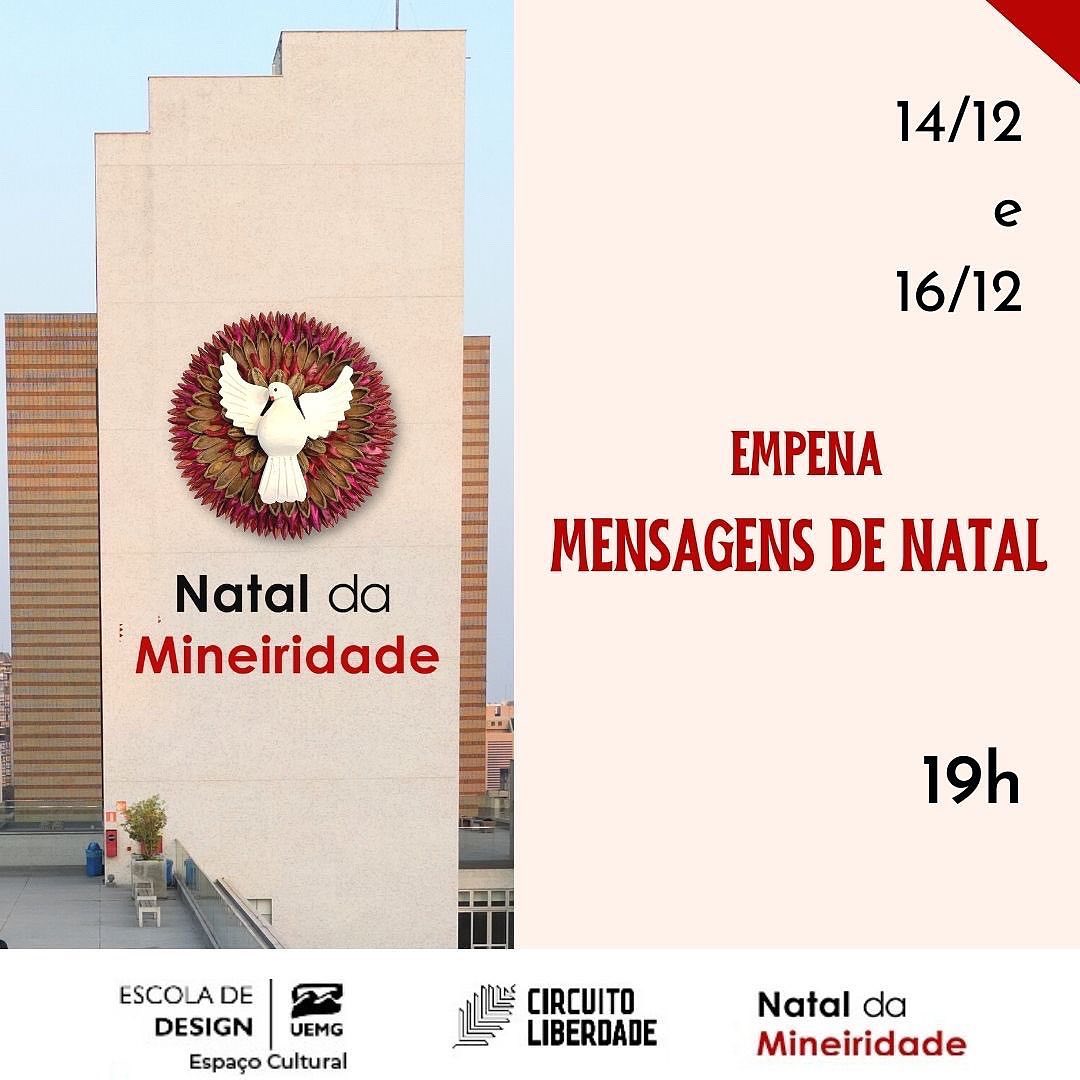 Teremos apresentação do Coral Ensaio Aberto - Festival Internacional de Corais - FIC, do Grupo de Saxofone da Escola de Música da UEMG, oficina de cartão de natal bordado e as projeções das frase enviadas, na empena do prédio.