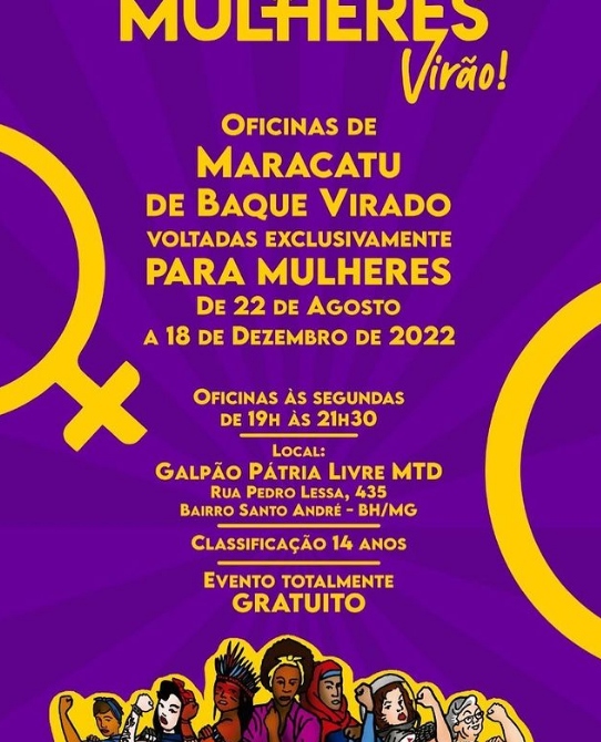 É com muita alegria que o grupo Baque de Mina informa que estão abertas as inscrições para as oficinas gratuitas de Maracatu de Baque Virado voltadas exclusivamente para mulheres!