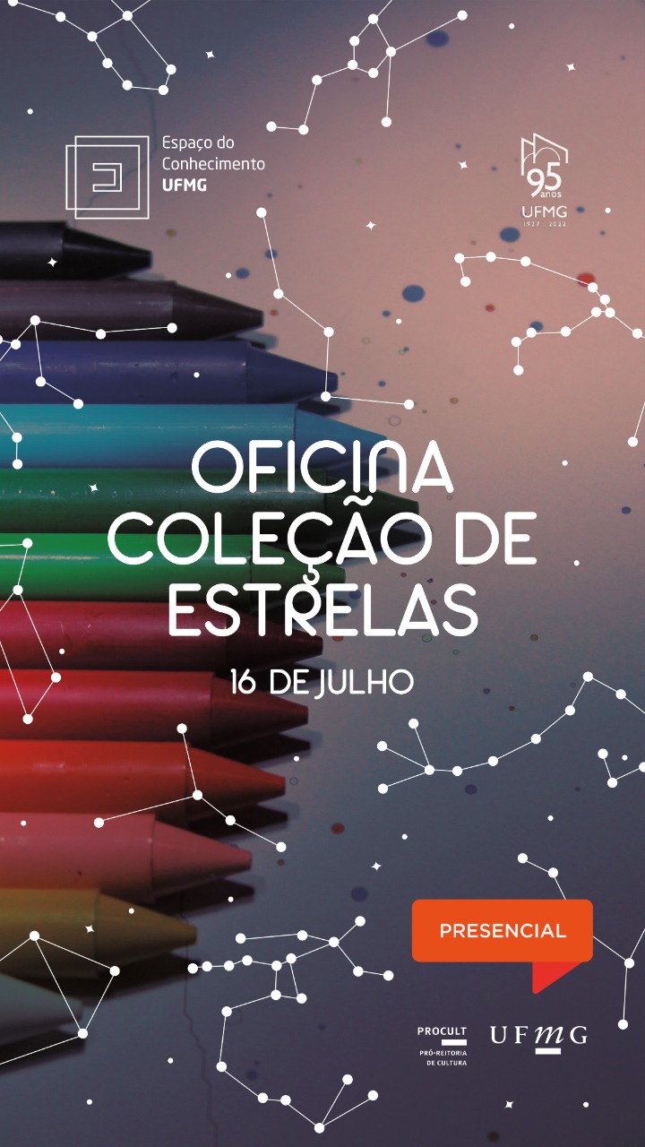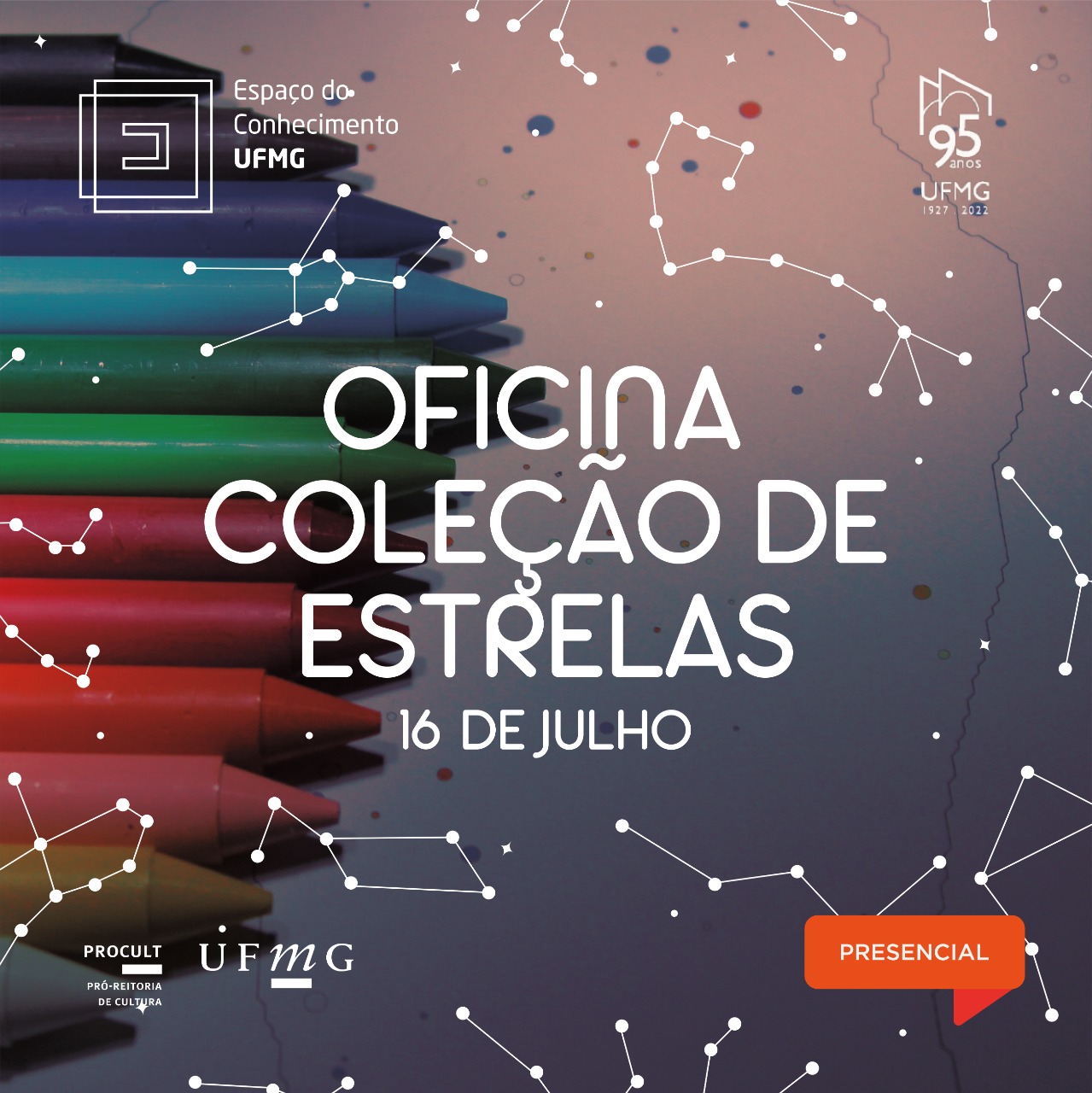 Com o propósito de apresentar as constelações oficiais e de outras culturas, contando algumas das histórias associadas a elas, o Núcleo de Astronomia do Espaço do Conhecimento UFMG, no próximo sábado, 16 de julho, às 15h, convida os visitantes a criarem suas próprias constelações na oficina ‘Coleção de Estrelas.’