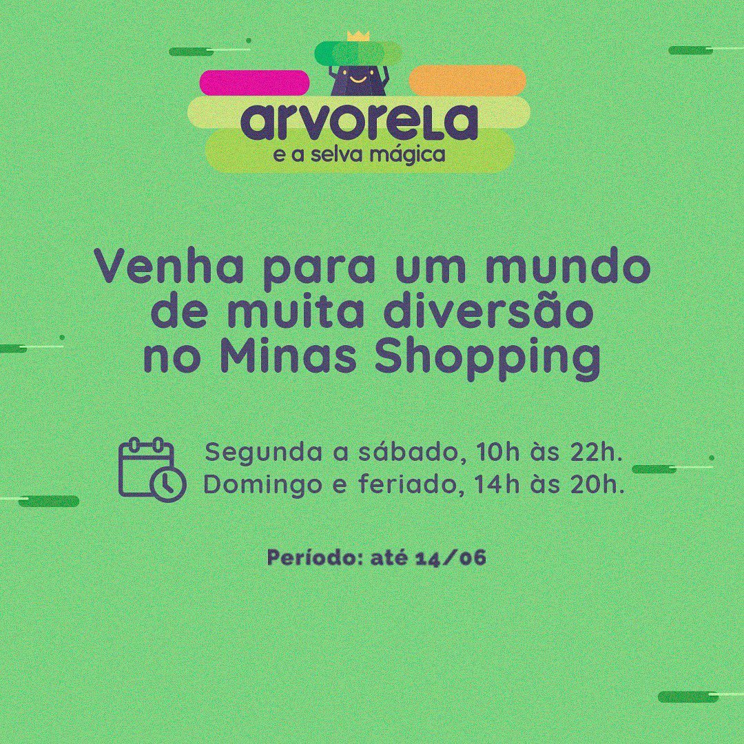 A partir desta semana, até 14 de junho, o Minas Shopping entra no clima de floresta com a atração "Arvorela e a Selva Mágica". Instalado na Praça de Evento (Piso 1), o evento promete muita aventura para as crianças em uma grande piscina de bolinhas, que inclui escorregador, cordas e outros brinquedos. O espaço vai funcionar todos os dias da semana: de segunda-feira a sábado, das 10h às 22h, e, aos domingos e feriados, das 14h às 20h.