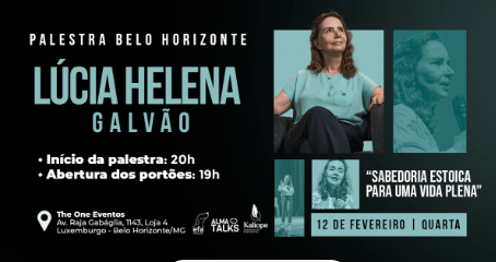 A renomada professora de filosofia Lúcia Helena Galvão traz ao público a palestra "Sabedoria Estoica para uma Vida Plena", onde ela explora os princípios do estoicismo — uma filosofia prática que ensina a focar no que está ao nosso controle e a aceitar, com serenidade, aquilo que não podemos mudar.