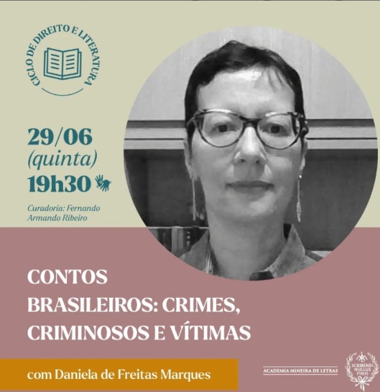 No dia 29 de junho, quinta, a partir das 20h, o público se encontra com Daniela de Freitas Marques, na Academia Mineira de Letras, para a palestra “Contos brasileiros: crimes, criminosos e vítimas”.