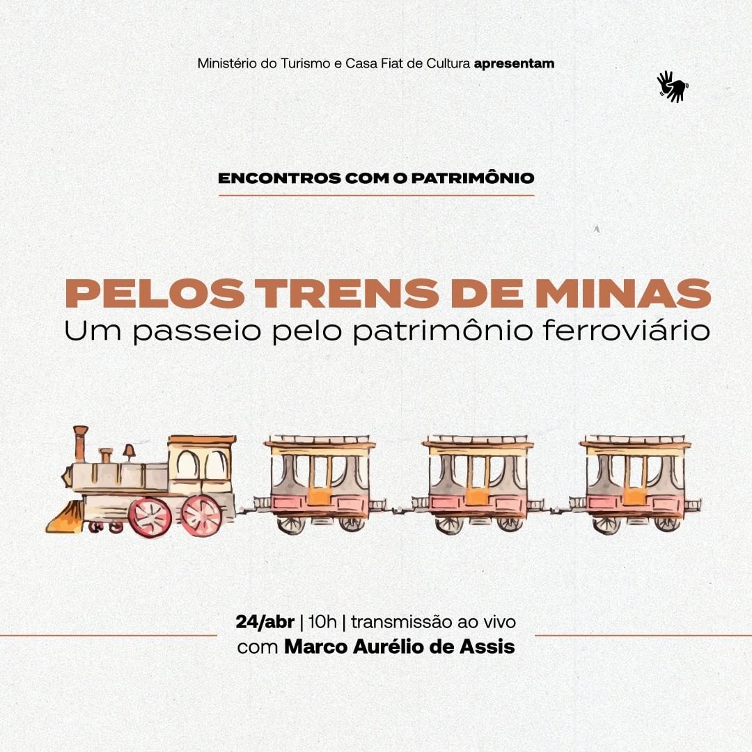 A Casa Fiat de Cultura realiza o Encontros com o Patrimônio online “Pelos trens de Minas: um passeio pela história ferroviária”, que abordará a história das ferrovias e seus aspectos patrimoniais, bem como a relação dos mineiros com os trens.