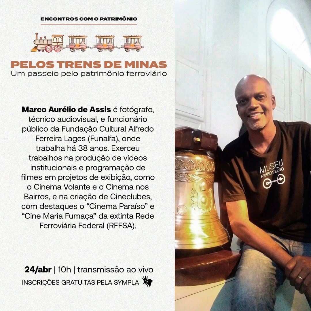 O convidado será o supervisor do Museu Ferroviário de Juiz de Fora, Marco Aurélio de Assis, que participará de um bate-papo virtual ao vivo com a historiadora e educadora do Programa Educativo da Casa Fiat de Cultura, Ana Carolina Ministério.