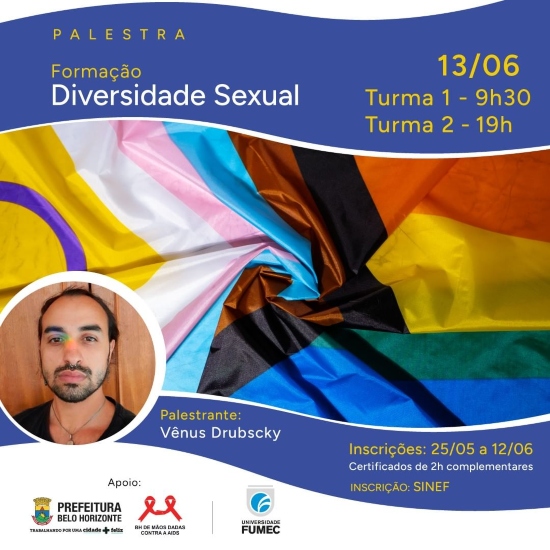 Com o apoio da Prefeitura de Belo Horizonte, no dia 13 de junho, a Universidade Fumec vai receber o Educador Social do Programa BH de Mãos Dadas Contra a Aids, Vênus Drubscky, para palestrar sobre o tema "Formação: Diversidade Sexual".