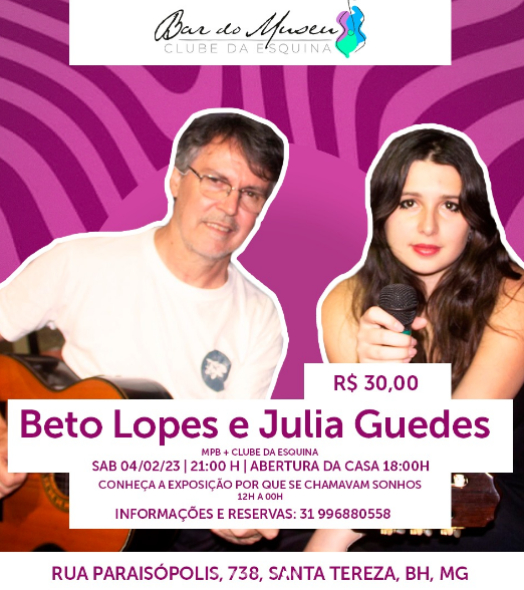 04/02 (sábado) - 21h - Beto Lopes e Julia Guedes