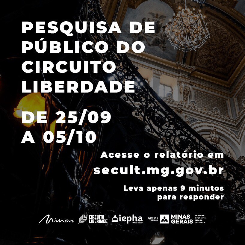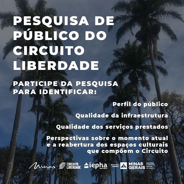 Que tal ajudar a gente e a @culturaeturismomg respondendo uma pesquisa que tem como objetivos identificar o perfil do usuário do Circuito Liberdade, suas características e motivações, avaliar o conhecimento do público em relação ao Circuito, entender a percepção em relação à programação virtual, que passou a ser oferecida durante a pandemia, e também as opiniões sobre a retomada.