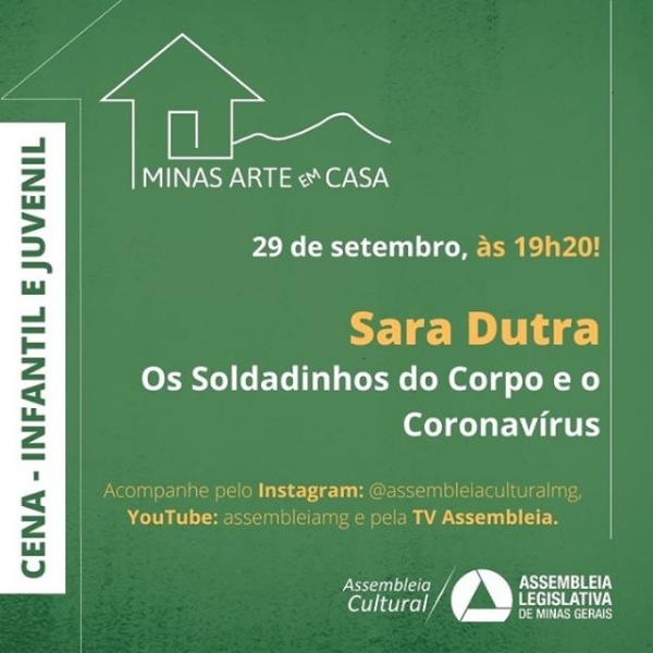29/09: Tem história pra criançada na terça? É claro! A Sara Dutra vai ensinar, com muita imaginação e música, como a gente pode se proteger do coronavírus.