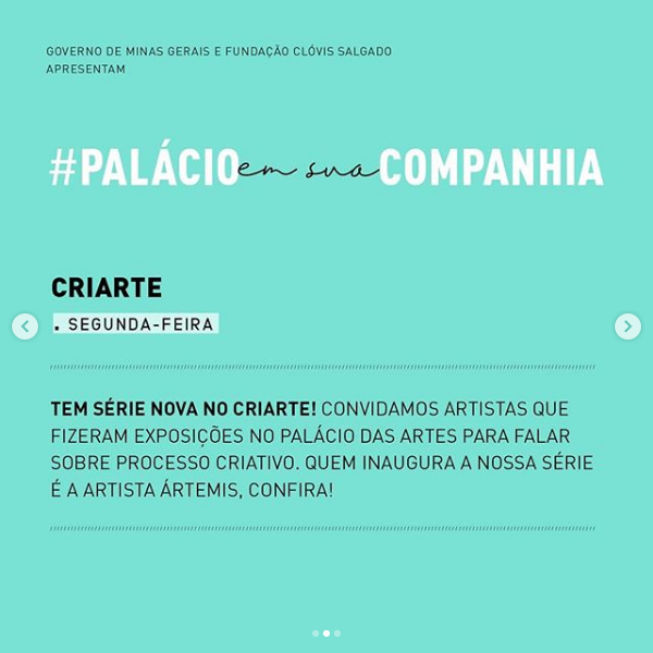 Nesta série do eixo Criarte, a FCS convidou artistas que fizeram exposições nas galerias do Palácio das Artes para compartilhar seus processos criativos, contando um pouquinho sobre seu trabalho e sobre sua trajetória.