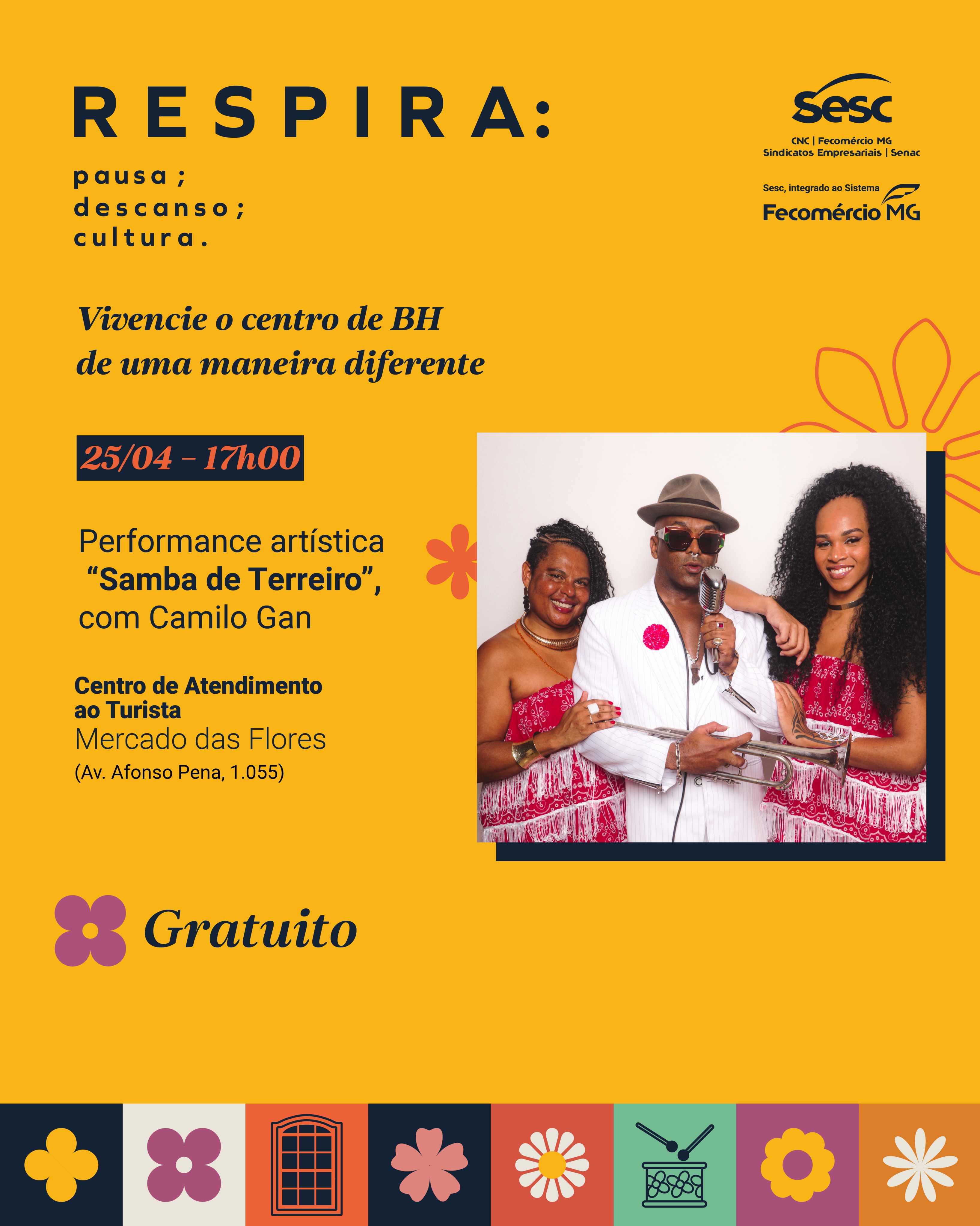 O Samba de Terreiro é um projeto criado pelo artista e agitador cultural Camilo Gan. A ação explora os elementos essenciais da matriz do samba. Rememora os elementos peculiares do samba, a corpo oralidade da umbigada, toques ancestrais de tambores, ludicidade e canto responsorial. Quando tocado inevitavelmente estimula o público a interagir com a banda, induz os presentes a se tornarem sambadeiras ou sambadores. Nessa ação, Camilo Gan estará acompanhado de mais três artistas.