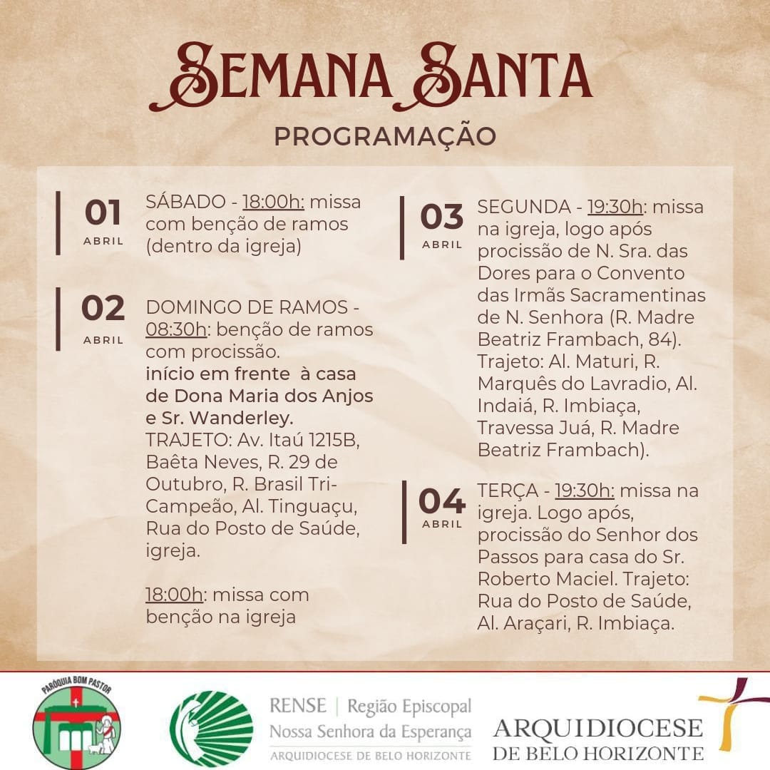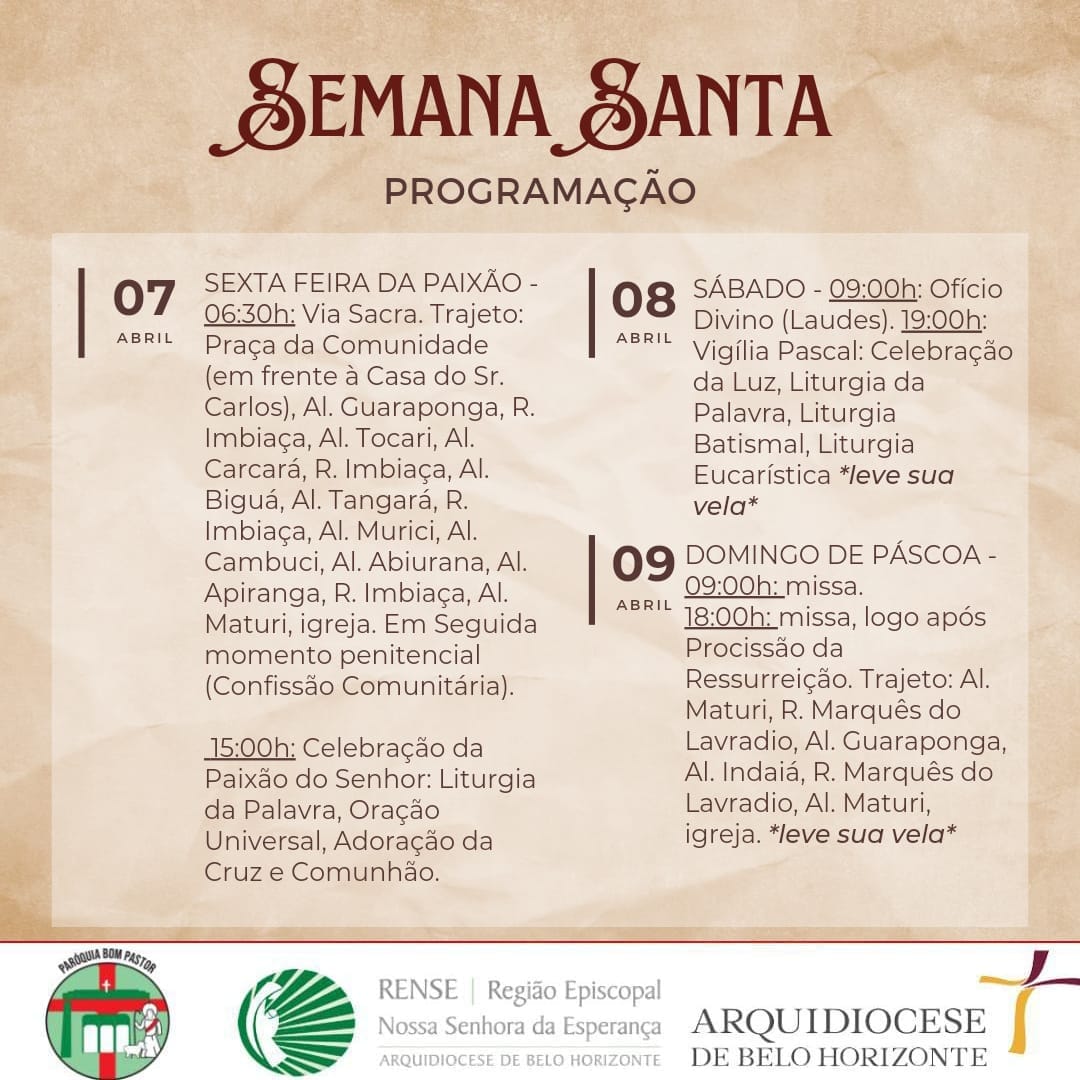 Missa após a Procissão da Ressurreição: 18h