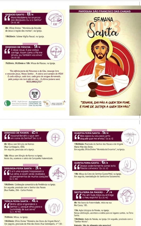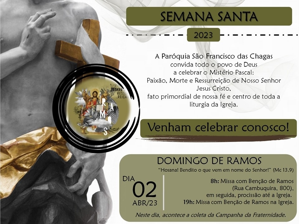 Missa com Bênção de Ramos (Rua Cambuquira, 800) e em seguida, procissão até a Igreja: 8h