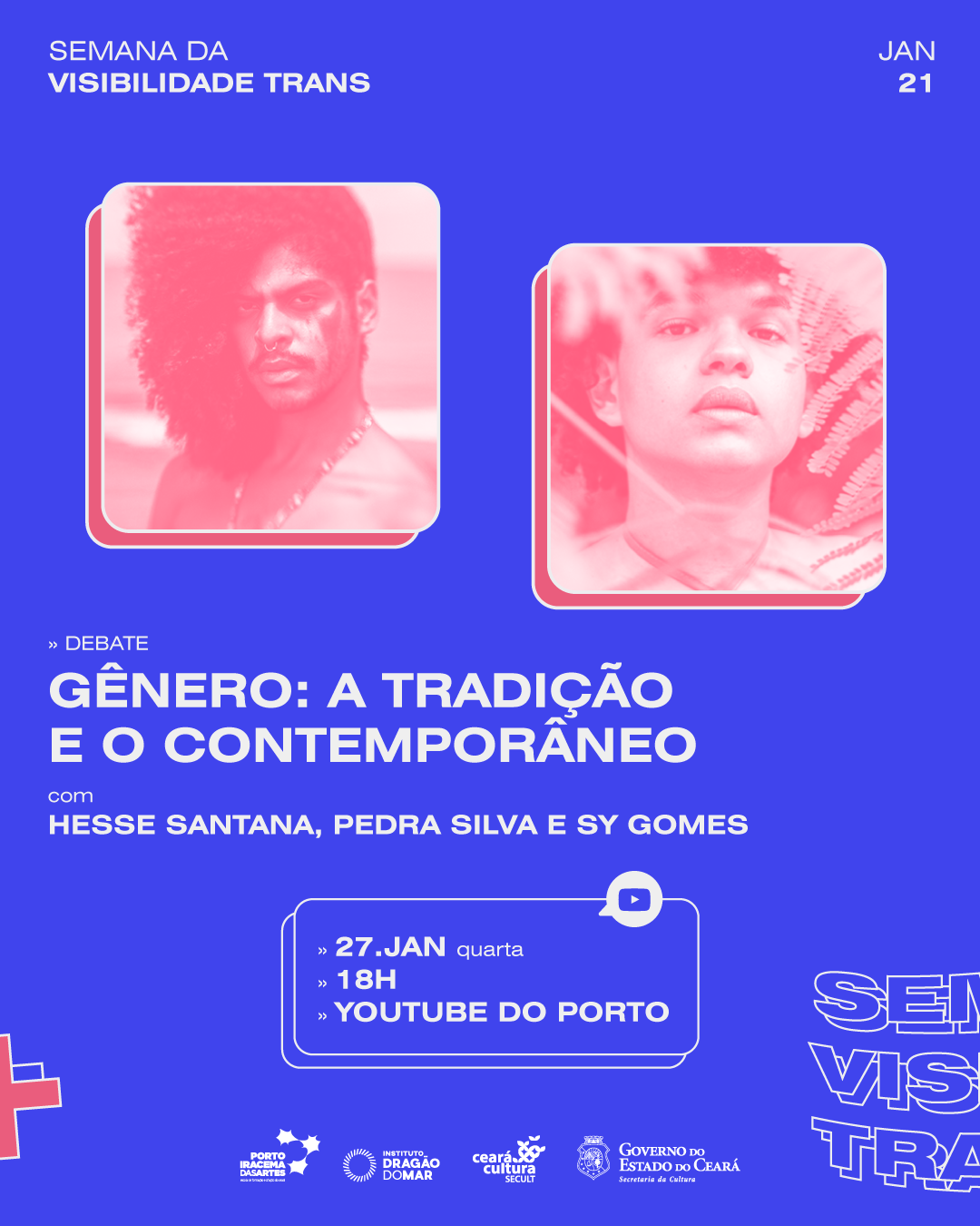 A Semana da Visibilidade Trans começa hoje! Com performance e conversas ao vivo transmitidas pelo Youtube e Instagram até sexta-feira, 29, a programação conta ainda com a “Mostra Transversa - Presenças Trans no Cinema Brasileiro”, que estende a exibição de filmes até o próximo domingo, 31.