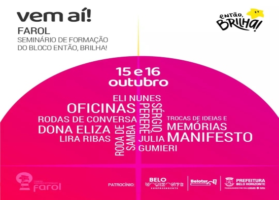 Rumo ao Carnaval 2023, e com muita vontade de celebrar nosso brilho em memórias e projetos, realizaremos, nos dias 15 e 16 próximos, o "Farol - Primeiro Seminário de Formação do Então, Brilha!".