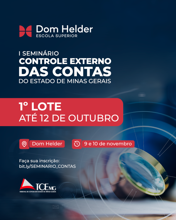 A Dom Helder, em parceria com o Tribunal de Contas do Estado de MG (TCE-MG), promoverá o I Seminário Controle Externo das Contas do Estado de Minas Gerais, nos dias 9 e 10 de novembro.