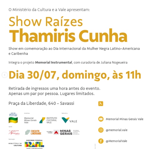 Thamiris Cunha apresenta o show Raízes, em comemoração ao Dia Internacional da Mulher Negra Latino-Americana e Caribenha.