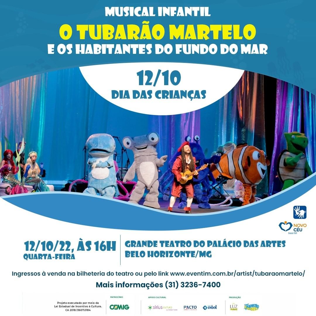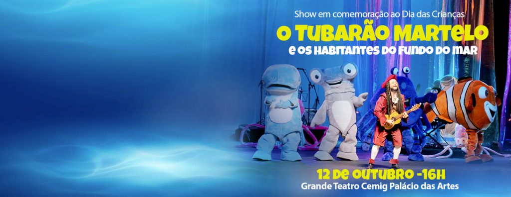 O musical infantil “O Tubarão Martelo e os Habitantes do Fundo do Mar” faz única apresentação no Grande Teatro do Palácio das Artes no Dia das Crianças, 12 de outubro, quarta-feira, às 16h.
